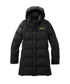 100% polyester. 5K/3K waterproof breathable fabric. 12.7-ounce, 100% polyester blown insulation. Professional and polished while protecting from the elements, this lofty, high-performing puffy is intentionally designed to lend dependable warmth and transitional style for downtown or out-of-town. The DWR finish sheds moisture while the blown-in synthetic insulation gives the soft, lightweight and pliable effect of down with easy washability.